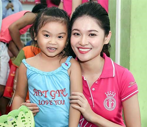 Á hậu 2 Huỳnh Thị Thùy Dung vui Trung thu cùng trẻ em tại Trung tâm Nuôi dưỡng và Chăm sóc trẻ em Tam Bình, quận Thủ Đức, TP Hồ Chí Minh. Ảnh: KHOA NGUYỄN.