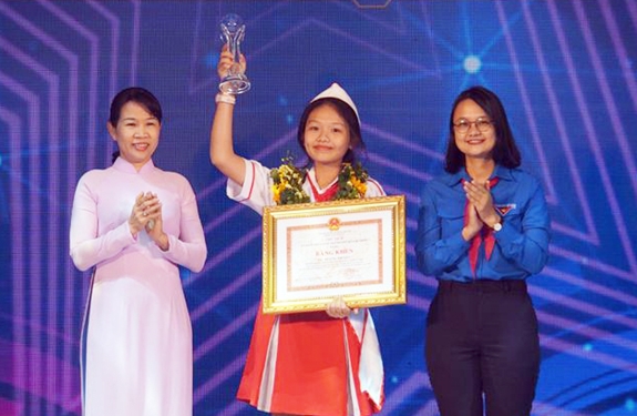 | Học sinh Hoàng Thị Yến nhận danh hiệu “Công dân trẻ tiêu biểu TP Hồ Chí Minh” năm 2020. |